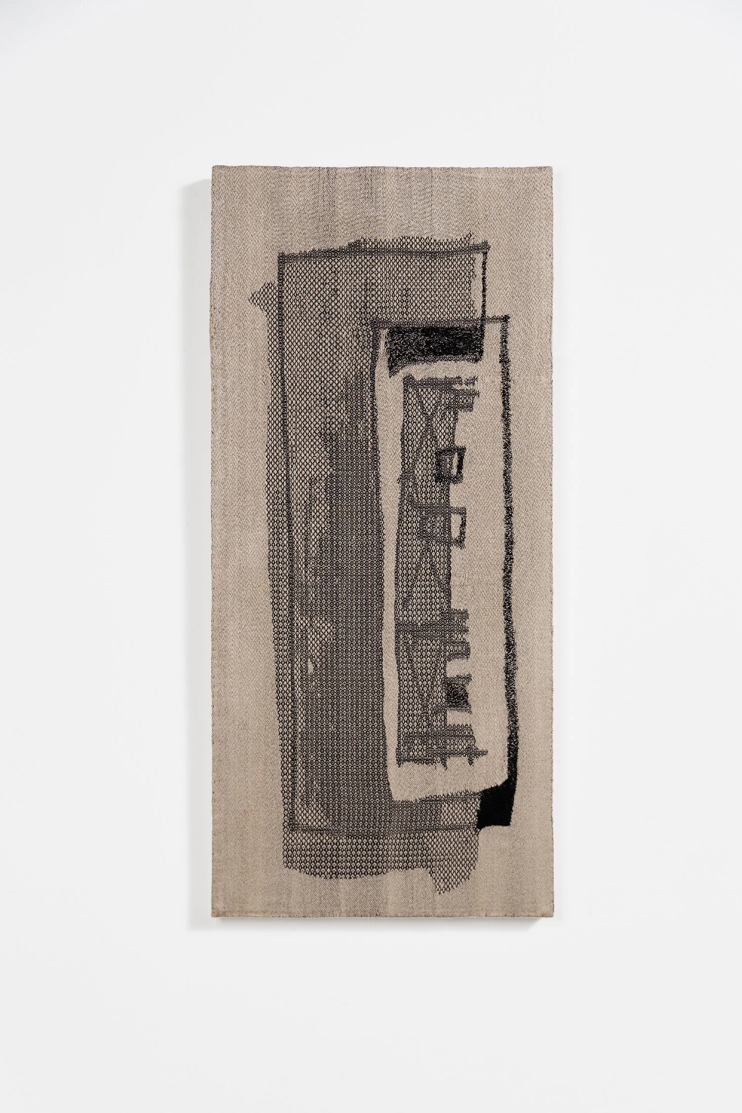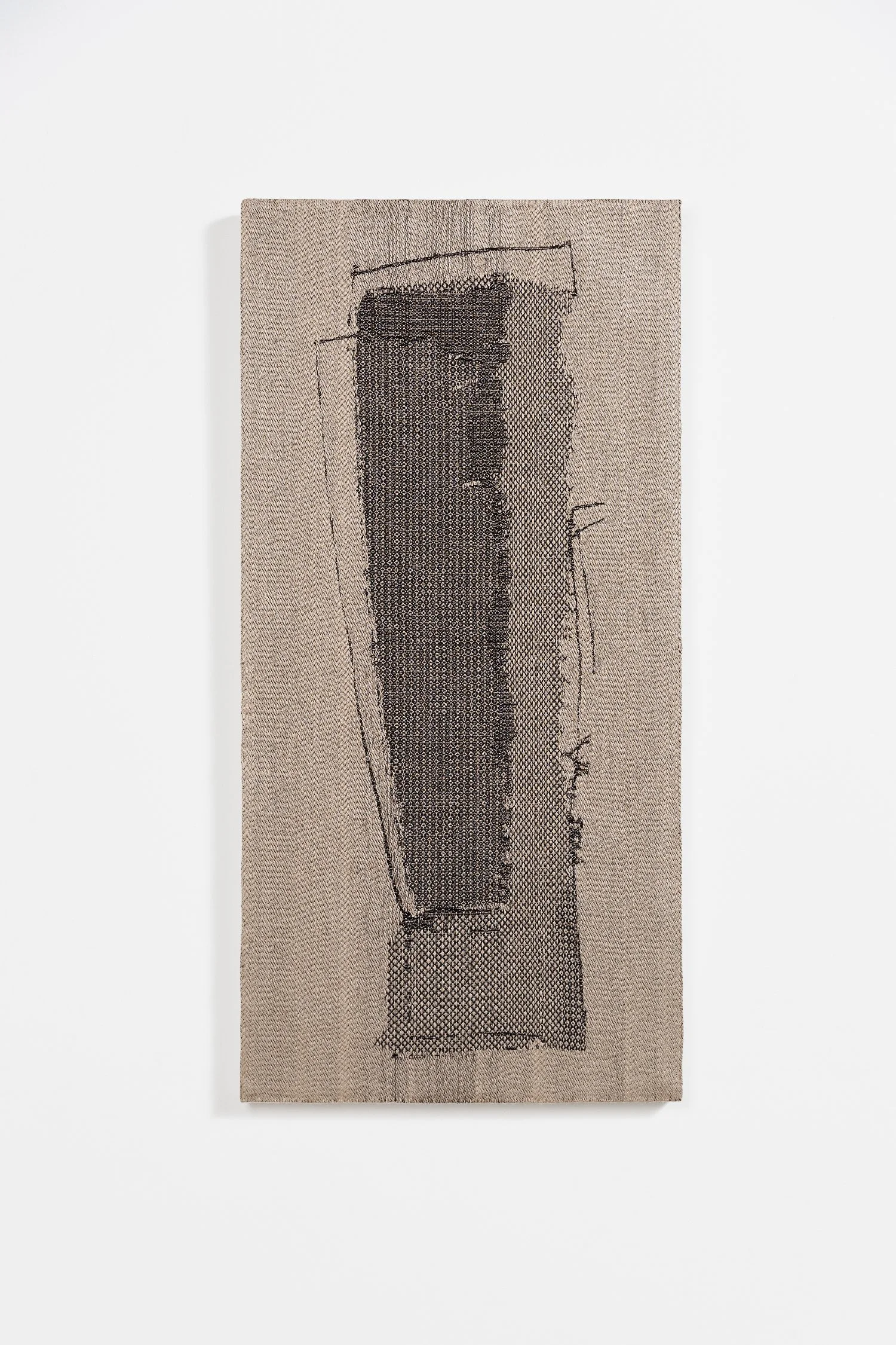Twill Diamond Study No 2, 2022. Woven acrylic and cotton fabric on stretched canvas. 40 × 19.25 × 1.5 in (101.6 x 48.895 x 3.81 cm)