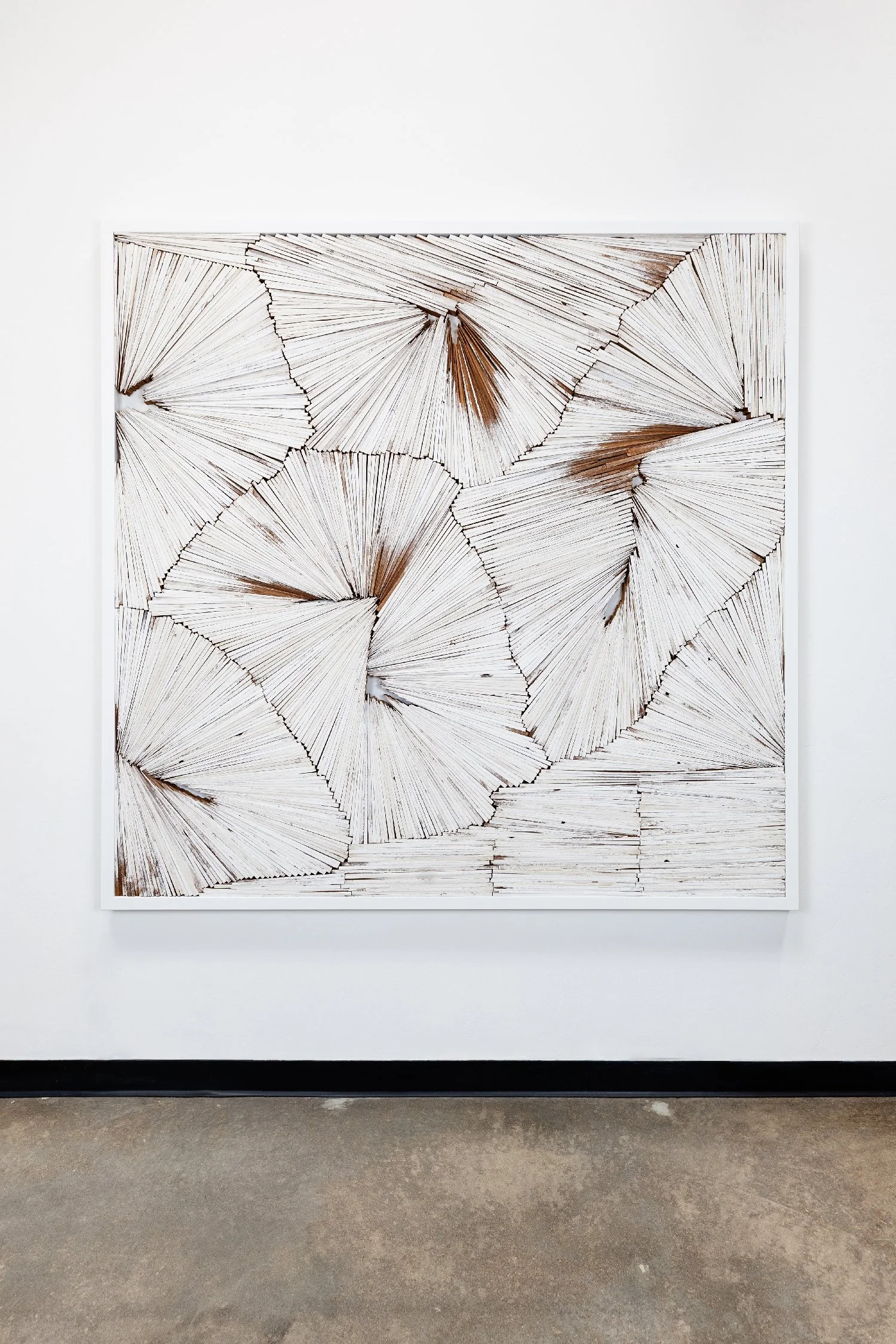 Line Array No 1, 2024. Western Cedar shims, paint, and framed wood panel. 84 x 84 x 2.5 in (213.36 x 213.36 x 6.35 cm)